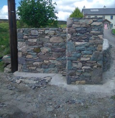 Fireplace built with a variety of local Kerry stone and a limestone mix with two top shelves.The design features both left and right stone wings with a wooden covering.